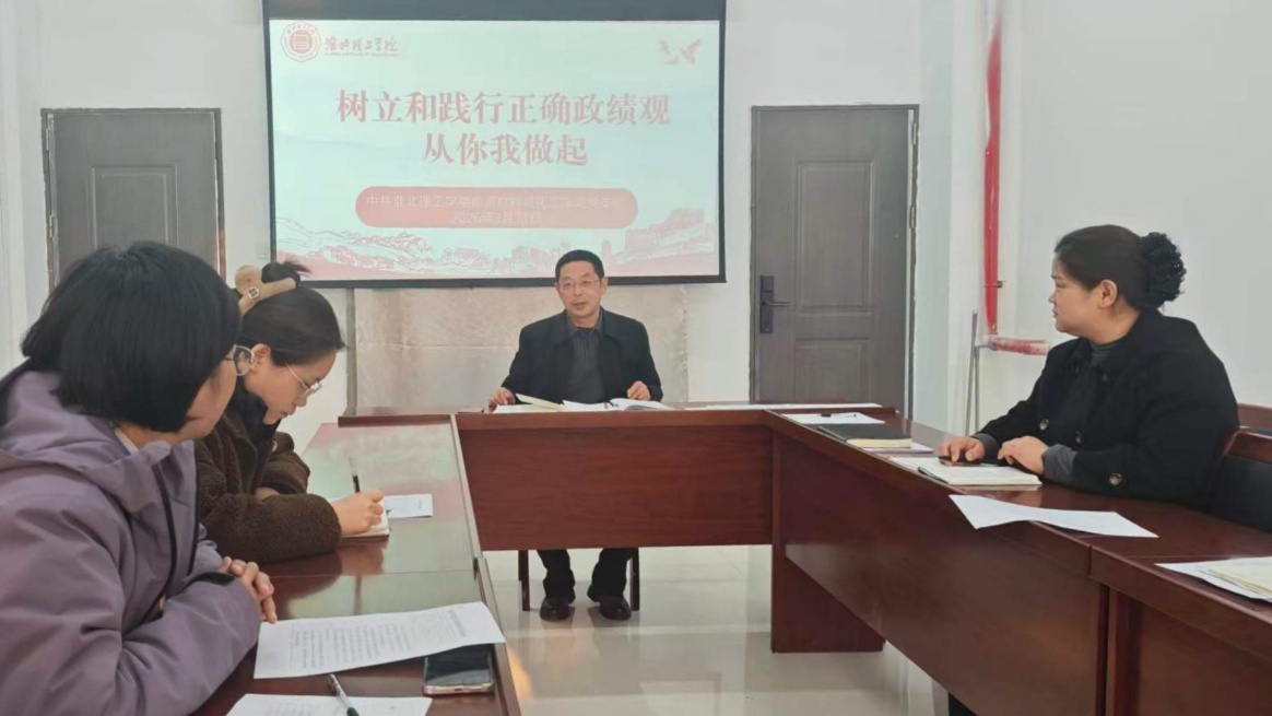 3月11日下午,太阳成城集团tyc234cc党支部在学院111会议室开展了“树立和践行正确政绩观 从你我做起”专题党课。学院全体党员教职工参加会议,党课由党支部书记万新军主讲。