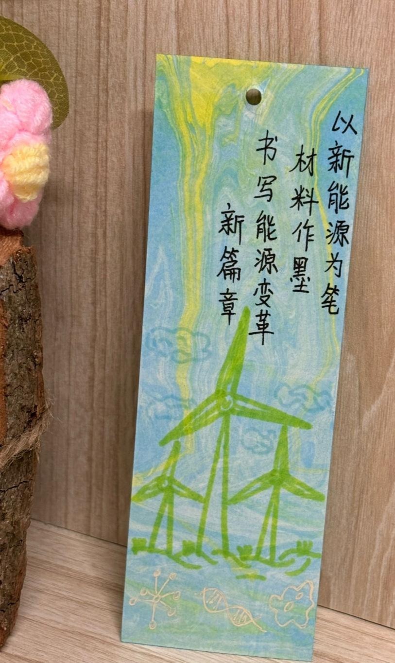 书签设计大赛更是点燃了同学们的设计热情。同学们充分发挥创意,将化学元素巧妙融入书签之中。分子结构、实验仪器设备、能源转化示意图等专业图案,在同学们的笔下幻化成精美的书签。这些书签或简约大气,以简洁线条勾勒专业之美;或色彩斑斓,用丰富色调展现化学魅力。它们不仅具有实用价值,更成为同学们表达对专业热爱与对阅读情怀的独特载体。